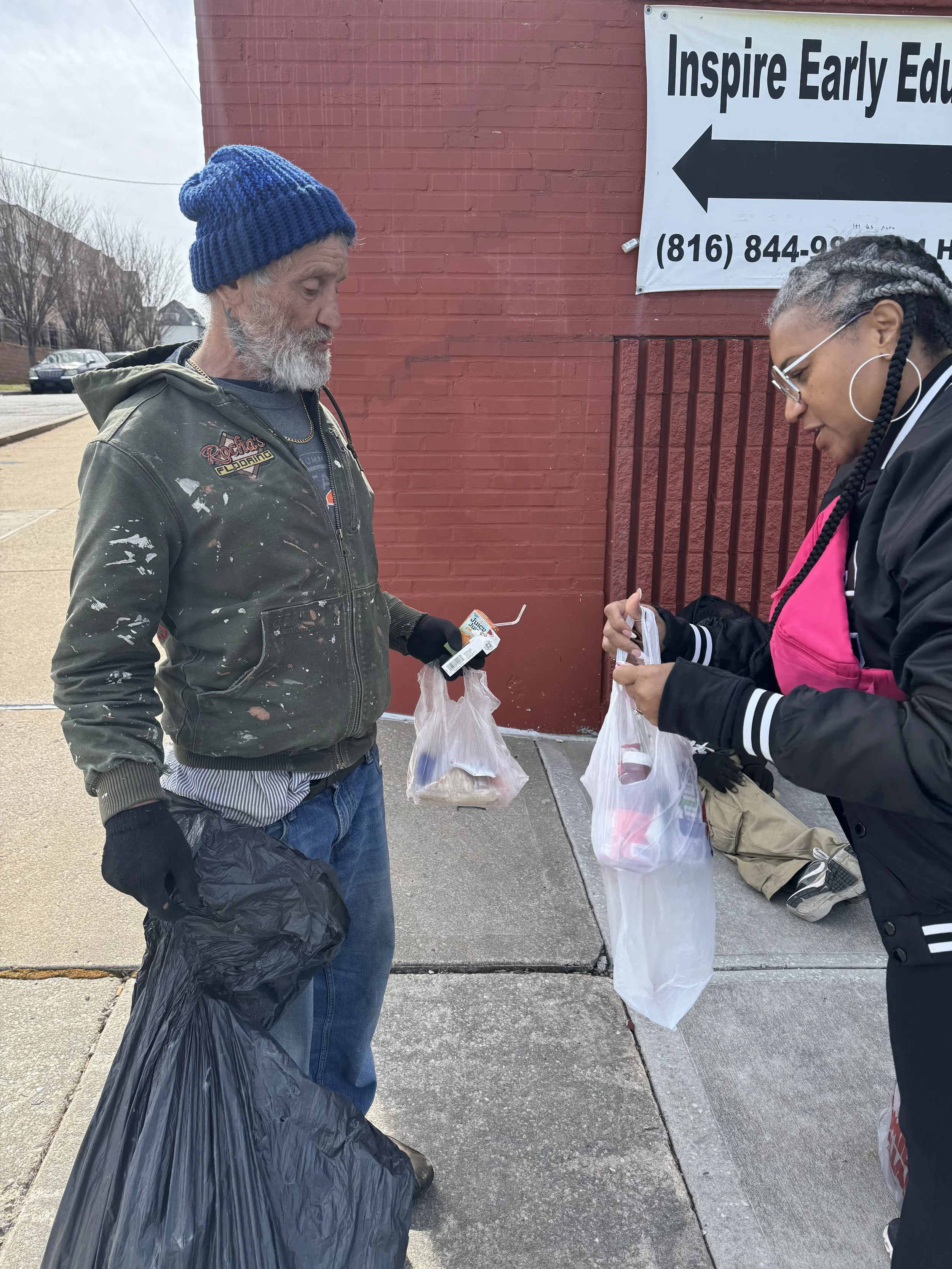 Since our start in 2024, we have been providing essential items to individuals experiencing homelessness across the Kansas City metro area. We distribute approximately 60 prepackaged grocery bags each month, totaling to 5,000 to 7,000 lbs of food and essential supplies to those in need.