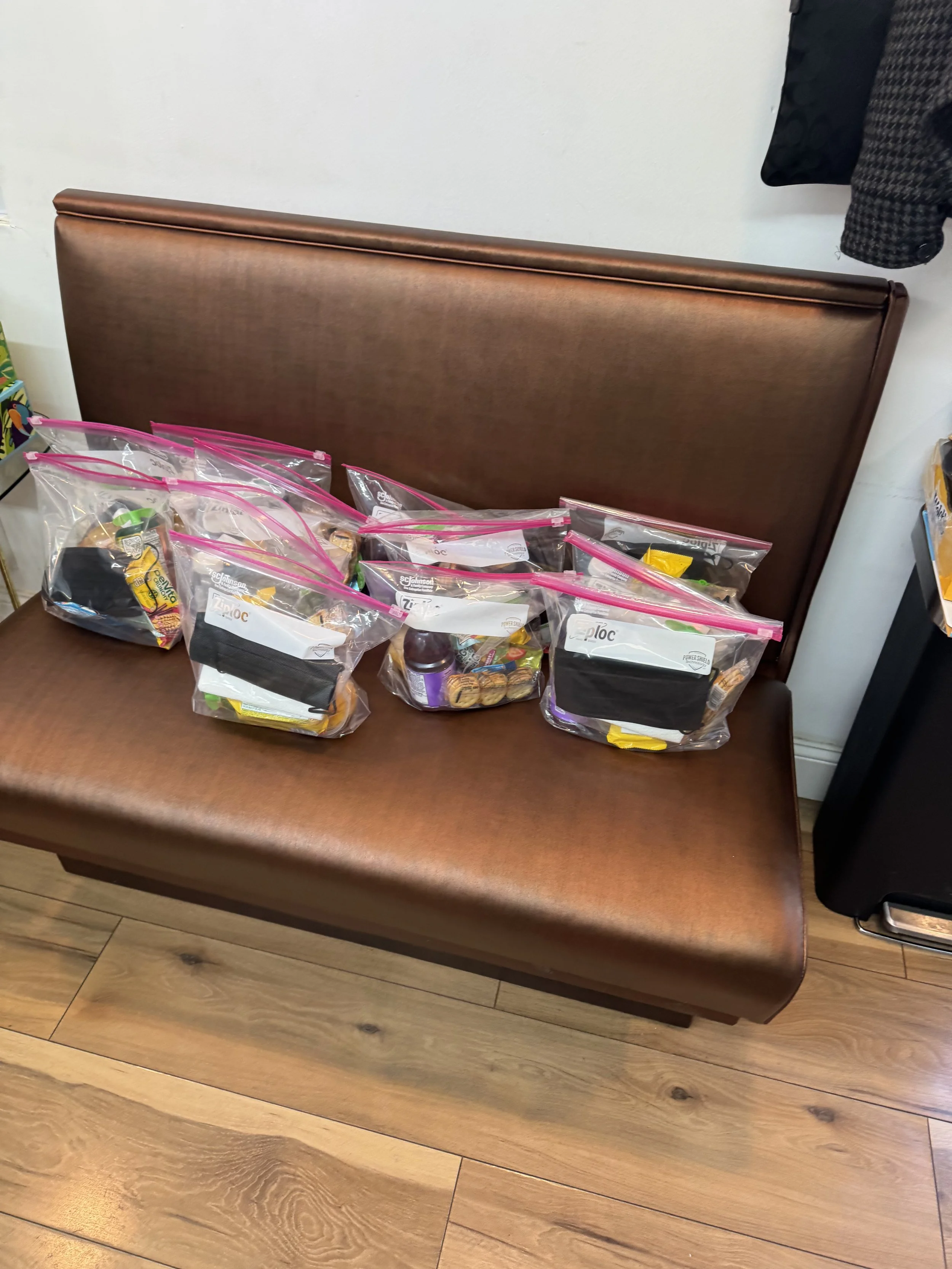 Since our start in 2024, we have been providing essential items to individuals experiencing homelessness across the Kansas City metro area. We distribute approximately 60 prepackaged grocery bags each month, a total that provides approximately 5,000 to 7,000 pounds of food and essential supplies to those in need.